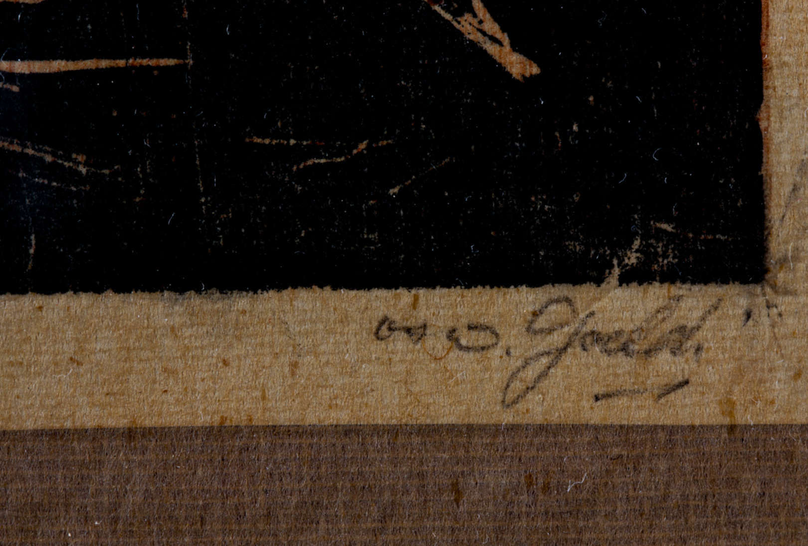 Oswaldo GOELDI (Rio de Janeiro, 1895-1961) "A dança do sol" Xilogravura com presença de cor. Assinada no canto inferior direito, nomeada e com justificativa de tiragem de 11\12. Mede 0. 312 m. x 0. 235 m.
