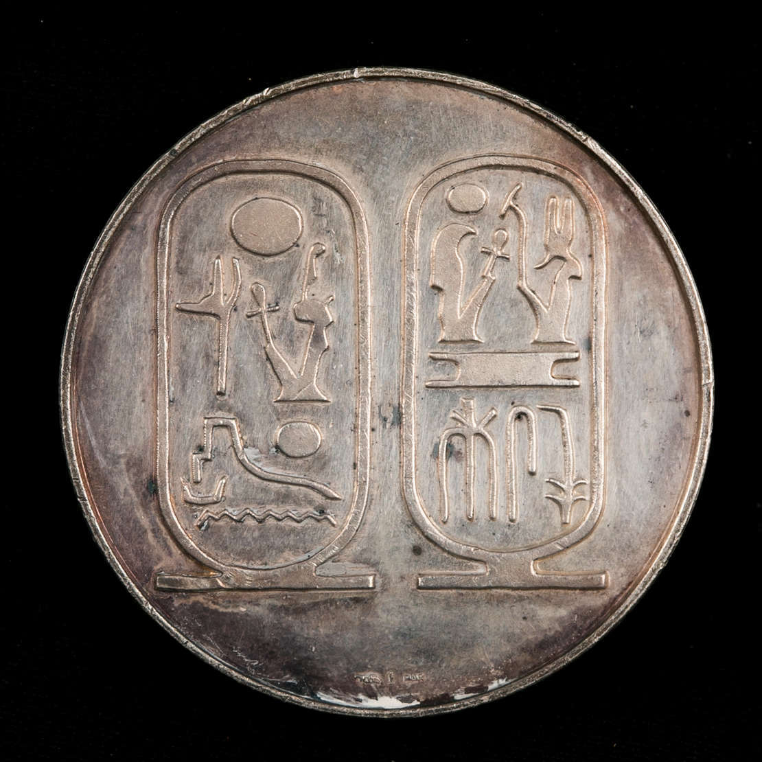 Medalha em prata com efígie romana circundada pelos dizeres Roma Visere Maius Alme Sol Possis Nihil Urbe. Sobre o rev...