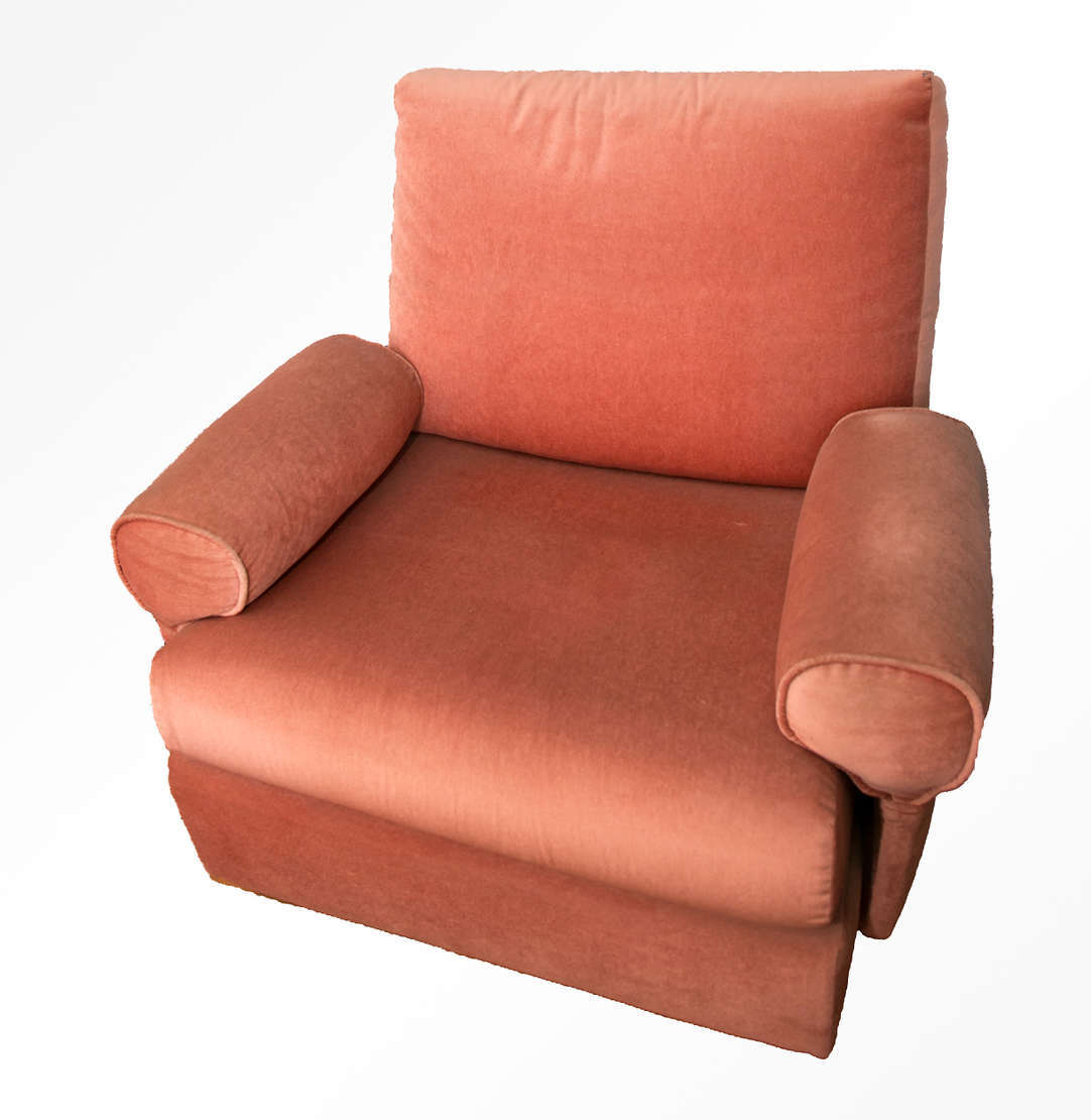 Conjunto composto de sofá e duas poltronas enveloppantes, estofados em seda com listras de motivos florais. Europa ce...
