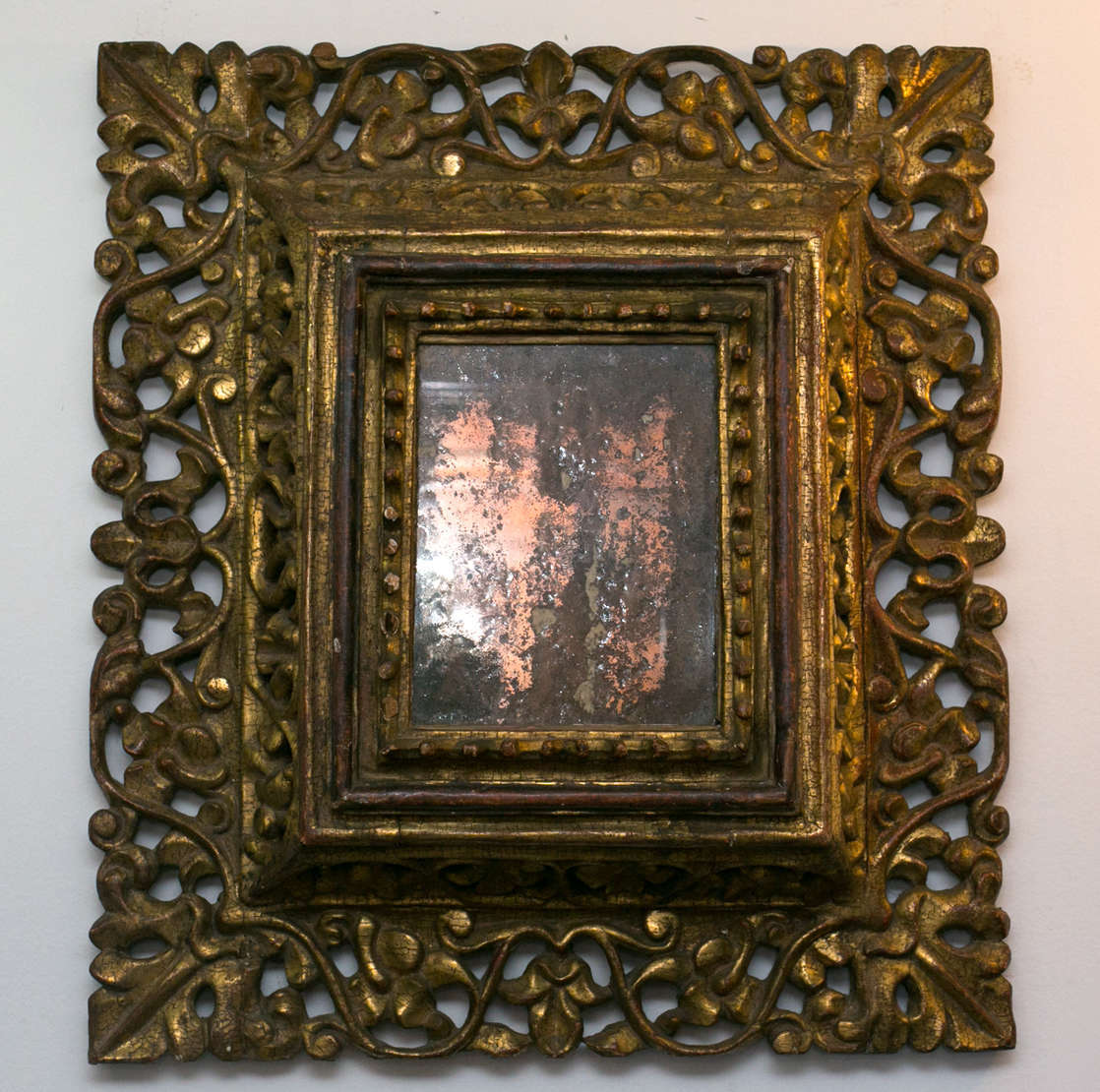 Espelho entalhado em madeira e dourado. Alto Peru, hoje Bolívia, século XVIII. O espelho propriamente dito, colocado ...