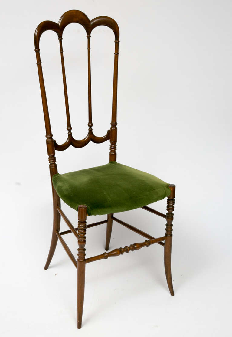 Conjunto composto de duas cadeiras, dois mochos, estofados em tecido, e uma mesa redonda em estilo neorrococó. Reint...