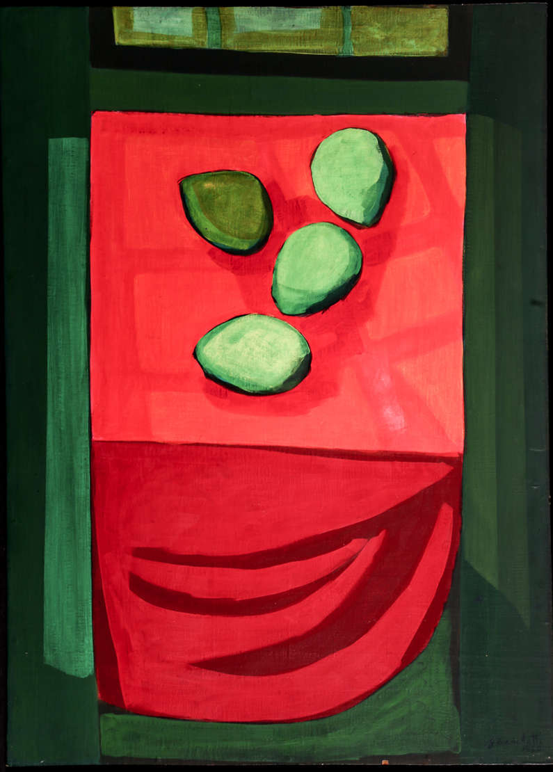 Glênio Alves Branco BIANCHETTI (Bagé, 1928 - Brasília, 2014). "Três peras". Acrílico sobre madeira. Assinado no canto...