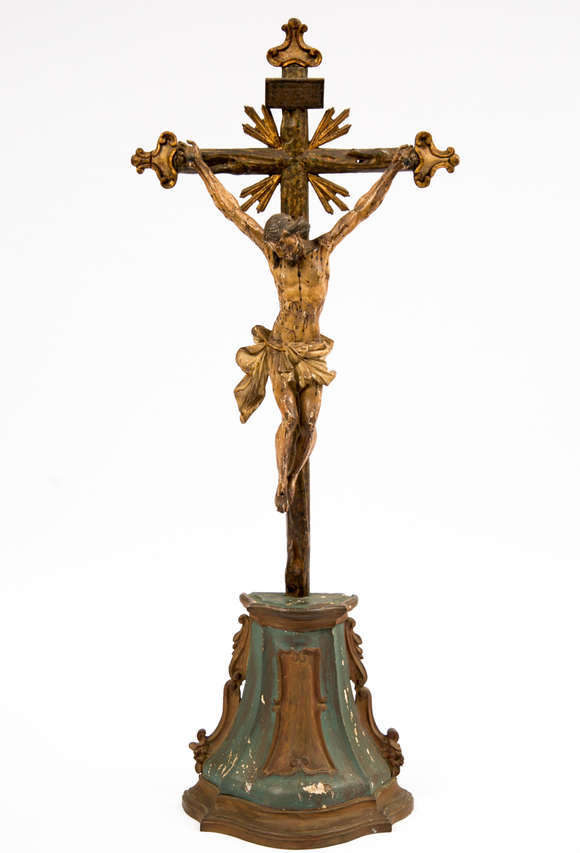 Crucifixo entalhado em madeira simulando lenho de árvore sem polimento. Brasil, Minas Gerais, terceiro quartel do séc...