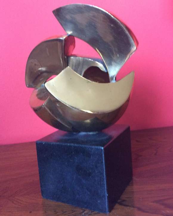 BRUNO GIORGI (Mococa, São Paulo, 1905 - Rio de Janeiro, 1993) "Meteoro" Bronze dourado sobre base cúbica em granito n...