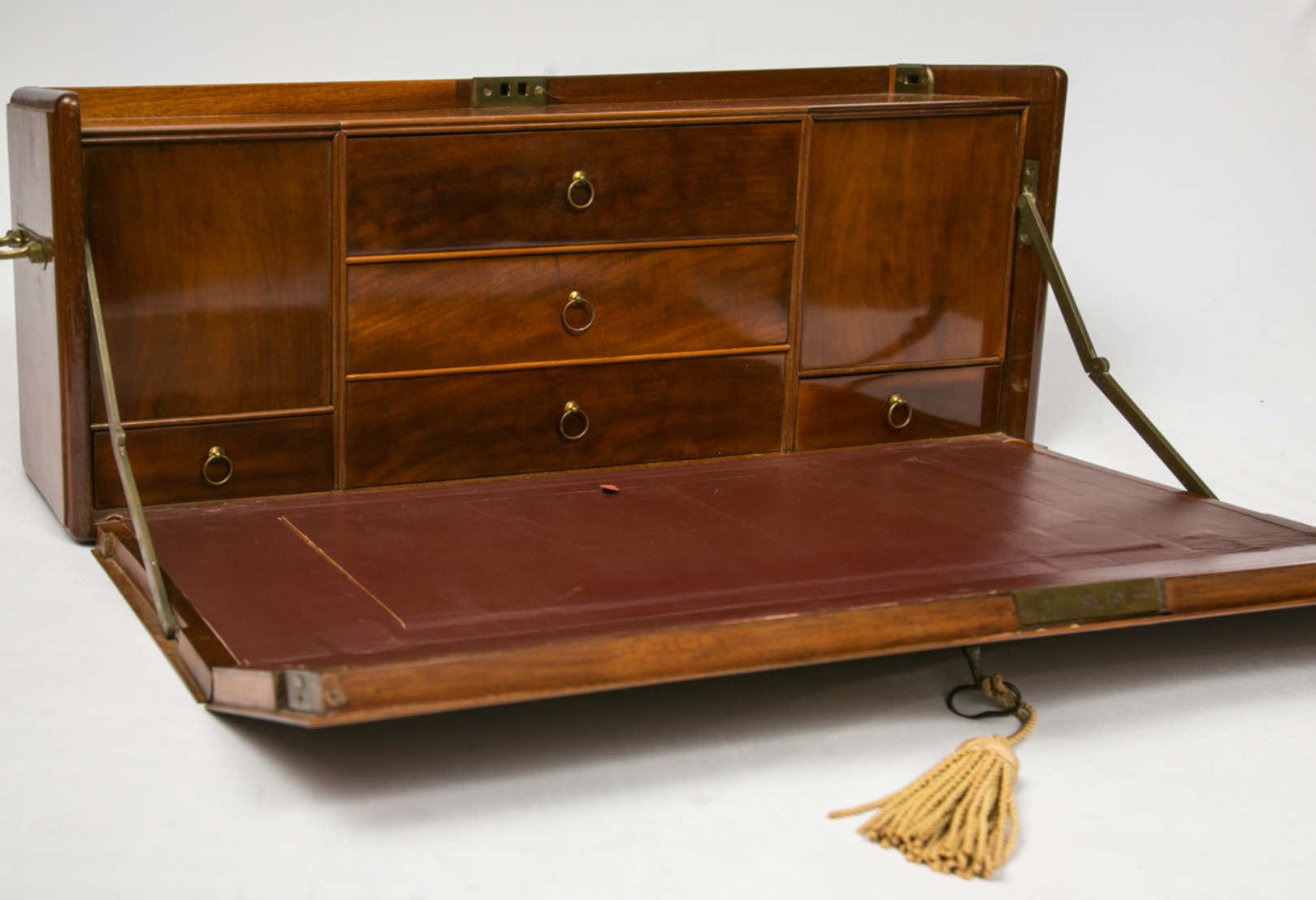 Military chest (commode bateau) em mogno, de procedência inglesa, da firma Hobbs & Co., em Londres. Início do século ...